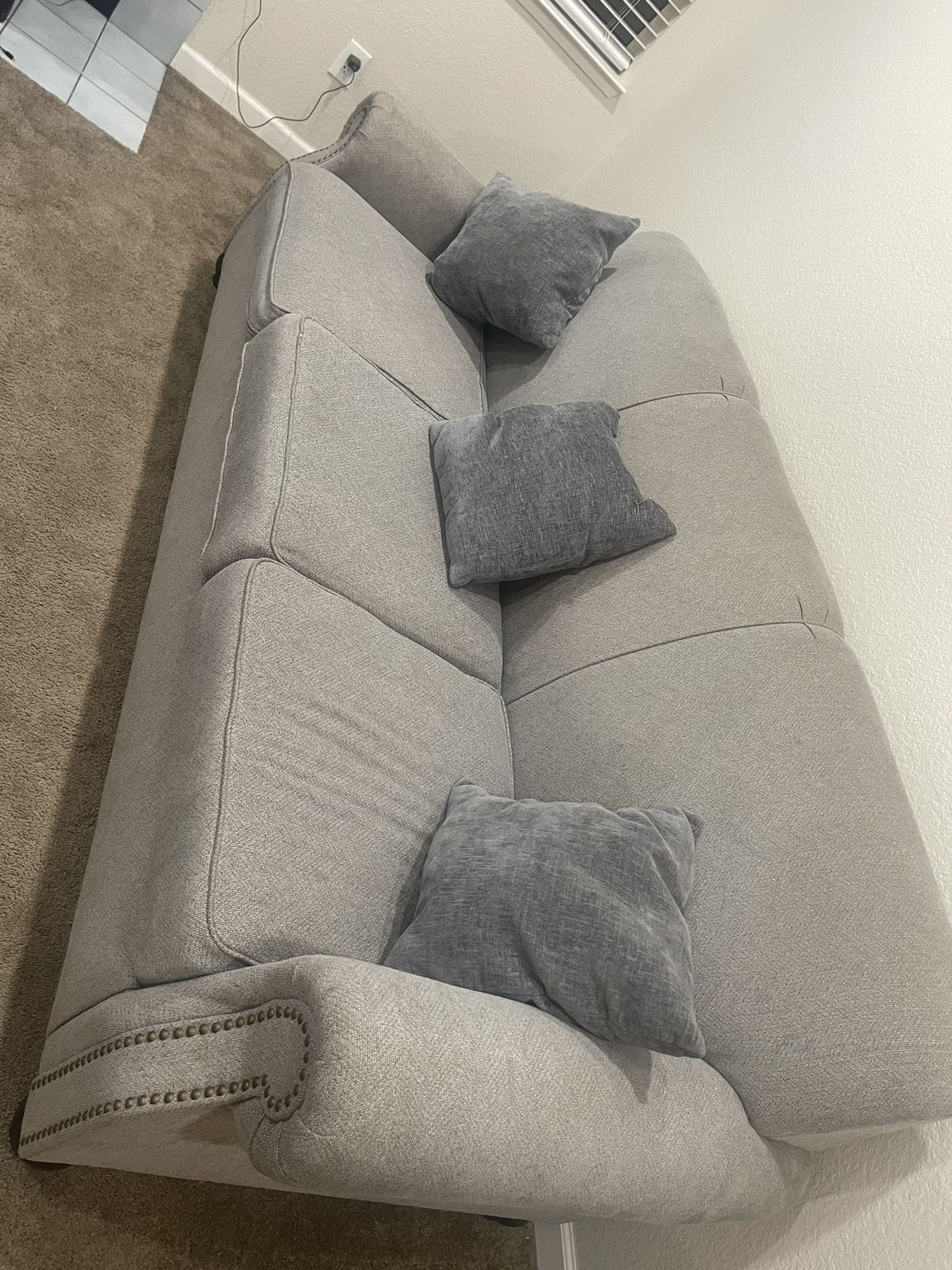 Good condition grey sofas includes pillows