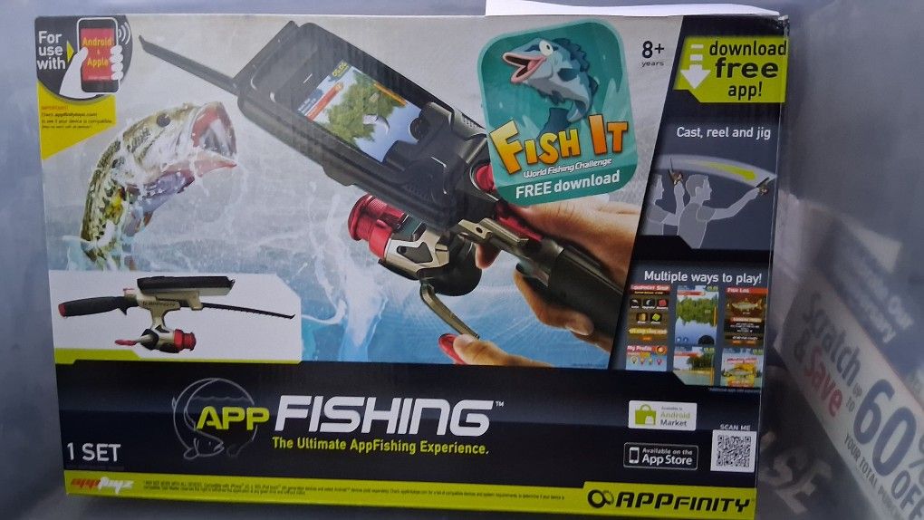 Appfinity APP FISHING controller set. Turns your phone into an interactive fishing game using a realistic rod-and-reel controller. ✔ Free app download ✔ Works with Android & iPhone ✔ Fun, motion-based fishing experience Perfect for kids, gamers, or fishing fans.
