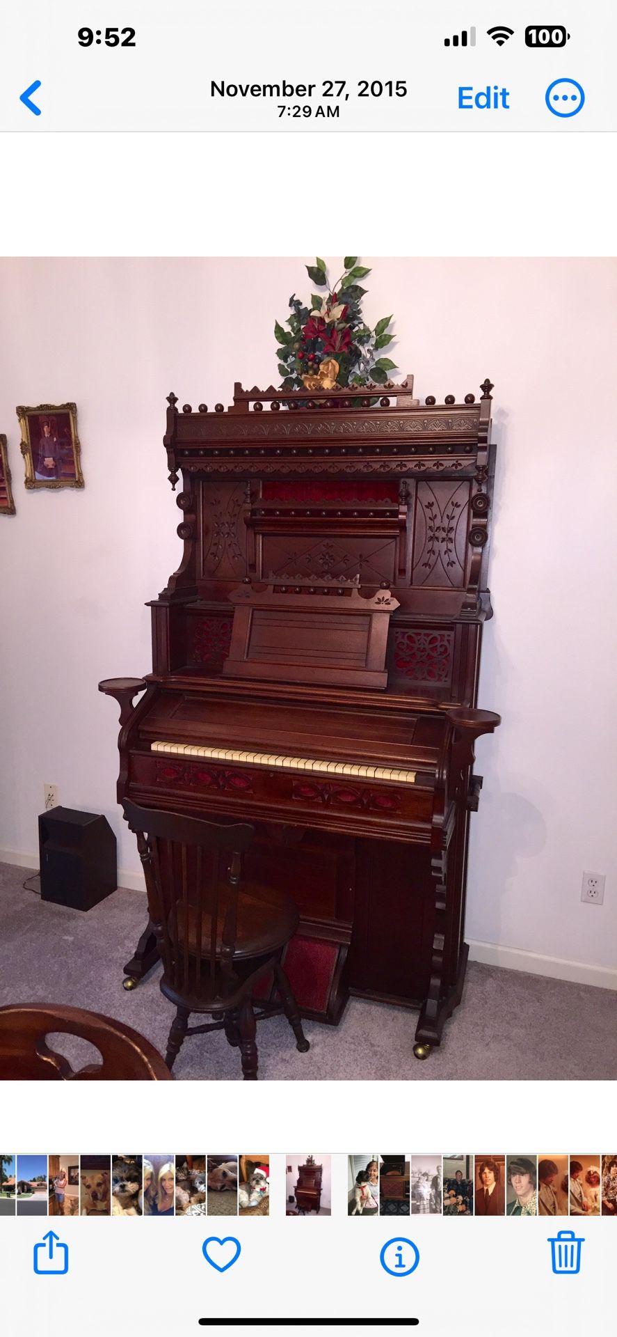 Beautifully restored antique pump organ from the early early 1900s. Needs a home with someone who appreciates antiques. You pump the pedals at the bottom when playing the organ. It was my mothers favorite antique furniture piece