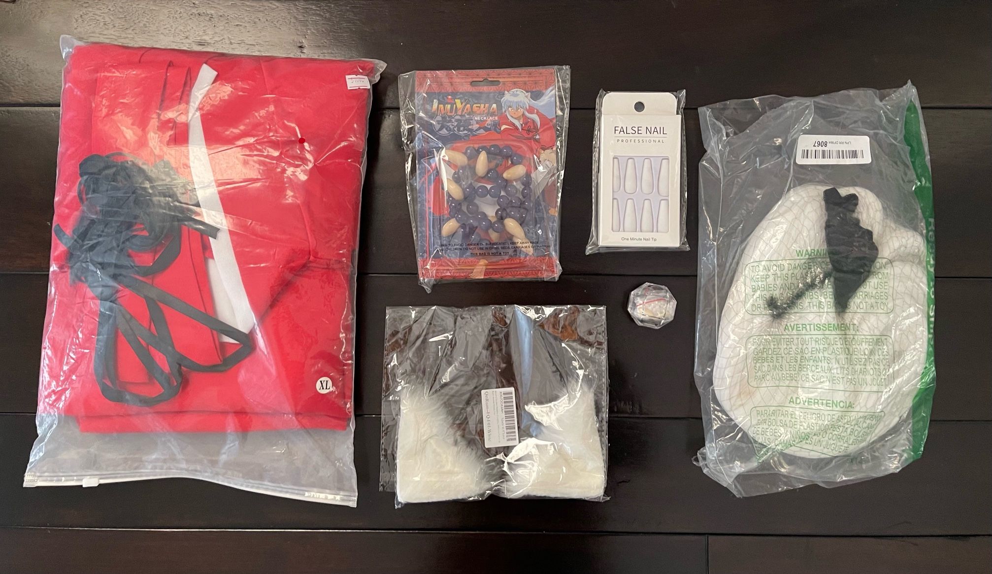 Inuyasha Suit Adult Costume for Cosplay & Halloween Set NEW Inuyasha Red Kimono Suit Costume (XL) Official Inuyasha necklace Teeth fangs Wig Ears False Nails (All brand new) Any questions, feel free to ask! Located in Huntington Beach