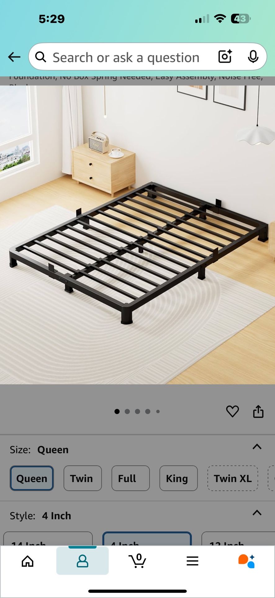Superstar 4” queen sized metal bed frame. Box never opened so will need assembly. Rounded corners for safety.