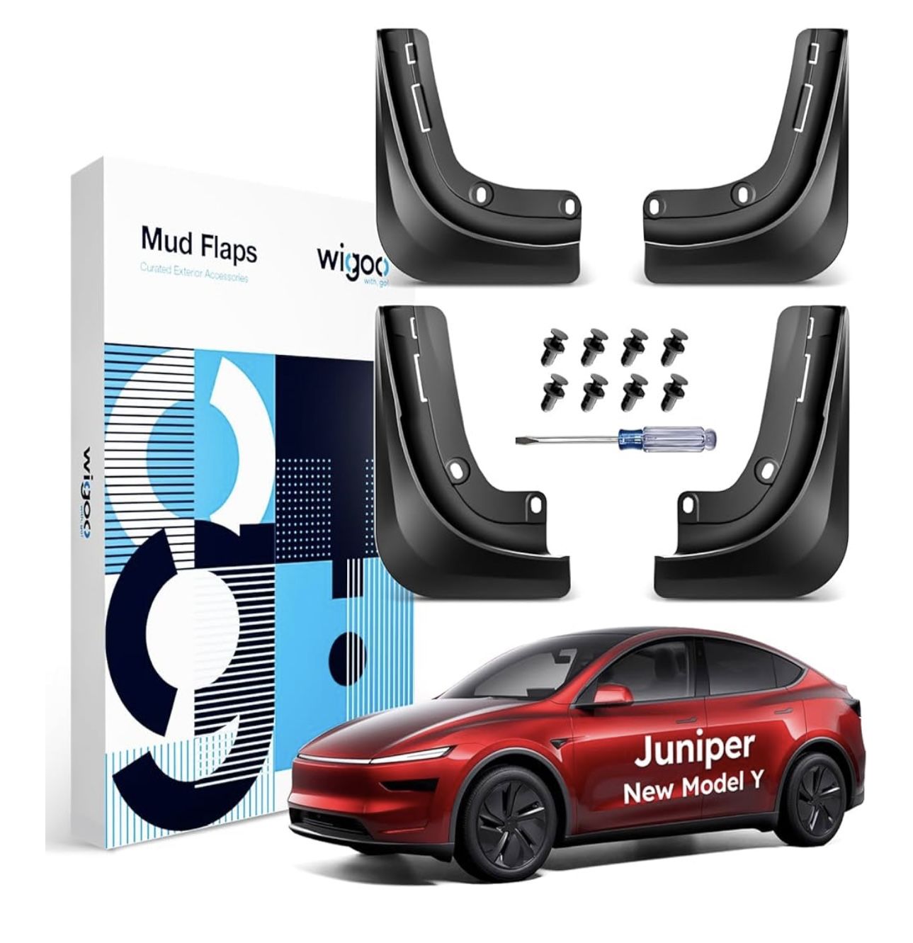 Wigoo 2025 New Tesla Model Y Juniper Accessories Mud Flaps [Stay Clean, Protect Paint] All Weather Guards, No Drilling Required, for Tesla New Model Y