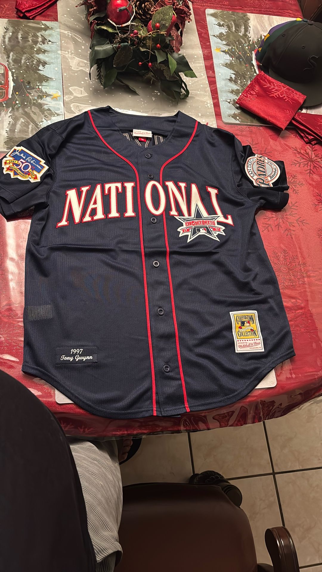 San Diego Padres 1997 National League All Star Game Authentic jersey made by Mitchell and Ness with All Star Game Patch, 1997 Jackie Robinson 50 year Anniversary patch and the Classic Padres logo patch size large #19 (Mr. San Diego) Tony Gwynn in great condition and priced to sell