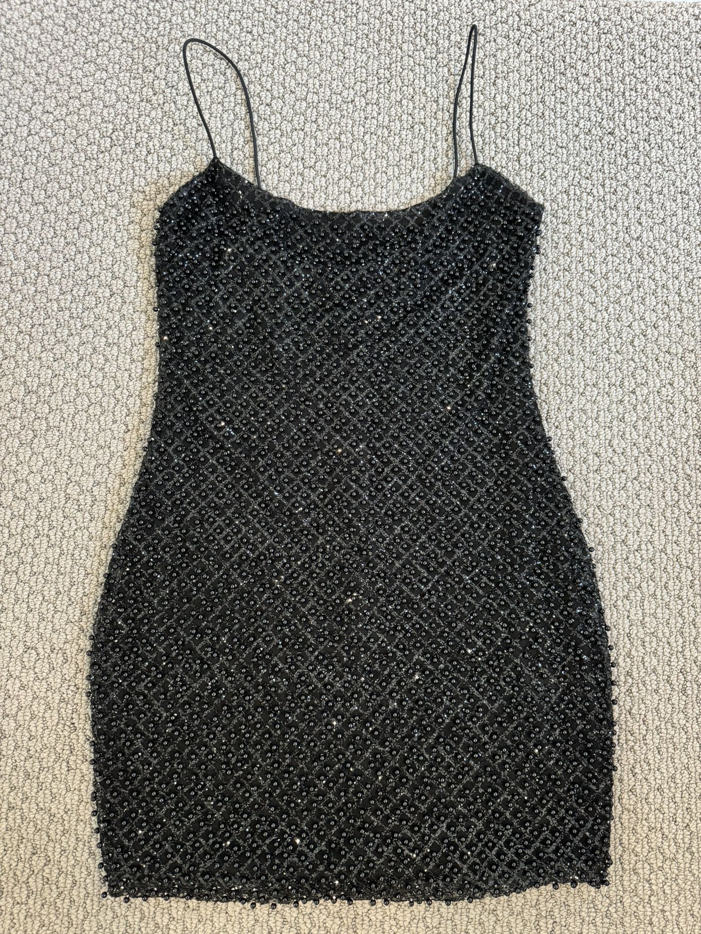 Worn once....Oh Polly mini dress! This stunning black beaded dress is perfect for any special occasion. Its elegant design and intricate detailing make it a standout piece.