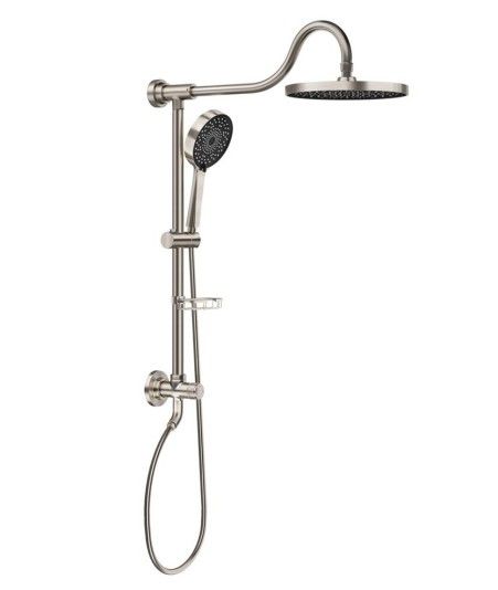 Description: Tearel 9 Inches Rainfall Shower Head and Handheld Showerhead Combo Shower System with Slide Bar, Brushed Nickel MSRP: 99.99 Condition: NEW Notes: Other info: FLEXIBILITY - Allows you to update or replace shower fixtures in the future without replacing any plumbing. PREMIER Finishing process - Will resist rusting and corrosion through everyday use. COMPATIBLE WITH ANY SHOWER VALVE - Designed to replace showerhead, works with any shower valve for full compability. SPA-LIKE SHOWER EXPERIENCE - Rain fall showerhead features 208 rubber nozzles, deliver an immersive shower experience. BUILD YOUR SHOWER SYSTEM WITH EASE - Includes 9 inches shower head, 3 function handheld showerhead, slide bar, integrated diverter, and soap dish, can be installed within 30 minutes