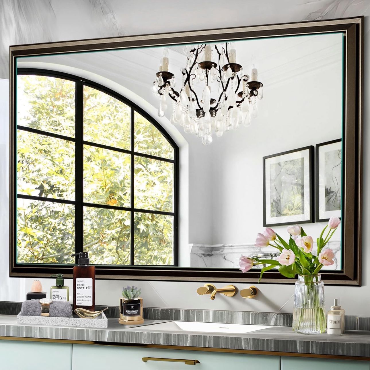 NicBex: Brand New and inspected. 48x30 Inch Coffee Brown Aluminum Alloy Framed Wall Mounted Rectangular Bathroom Vanity Mirror. Retails for $229.99, but here on "SPECIAL TODAY" you only pay $65.00