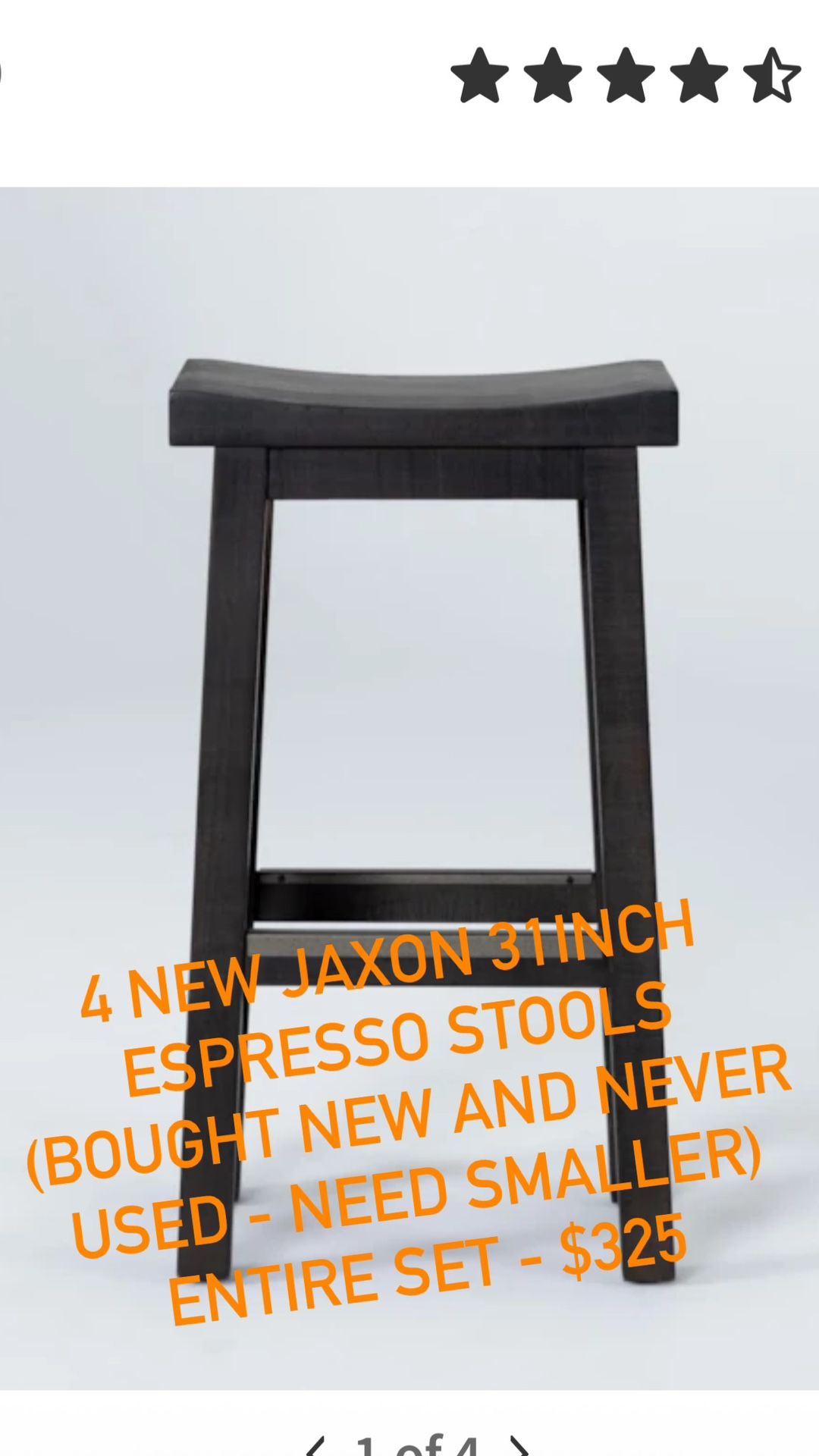New!! Never used! Living Spaces - Jaxon - Espresso 31 inch counter stool - total 4 - set