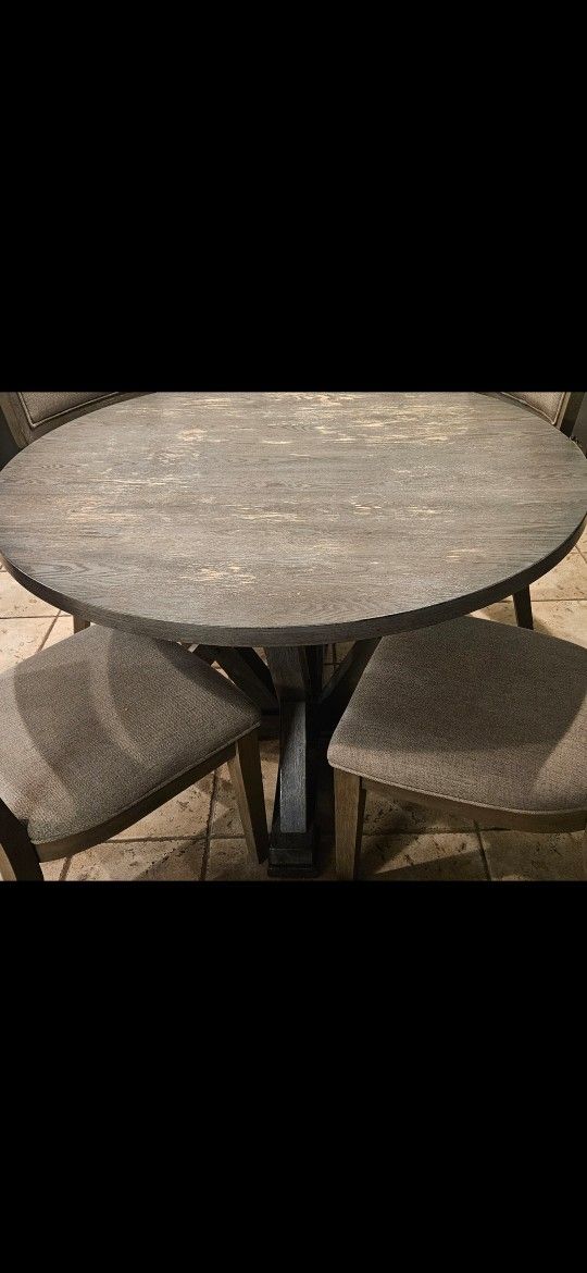 Gray table with black matching chairs