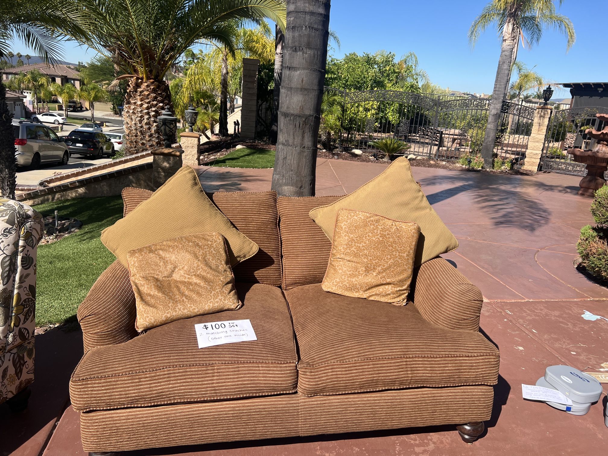 High quality set of couches from Macys in good condition, with pillows. Very soft and comfy, and adds a chic look to any living space. Couch comes from a clean, non-smoking home with no pets. Bigger couch is 86x40 in, smaller couch is 62x40 in. Pickup only.
