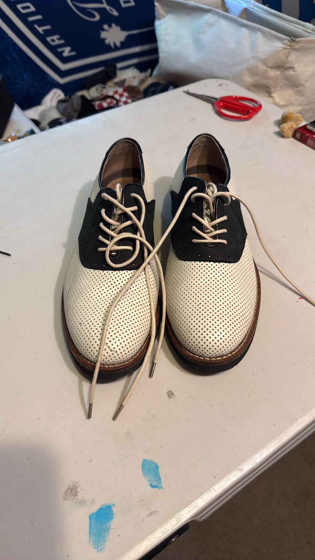 Lightly worn, men’s dress shoes. Black and white leather