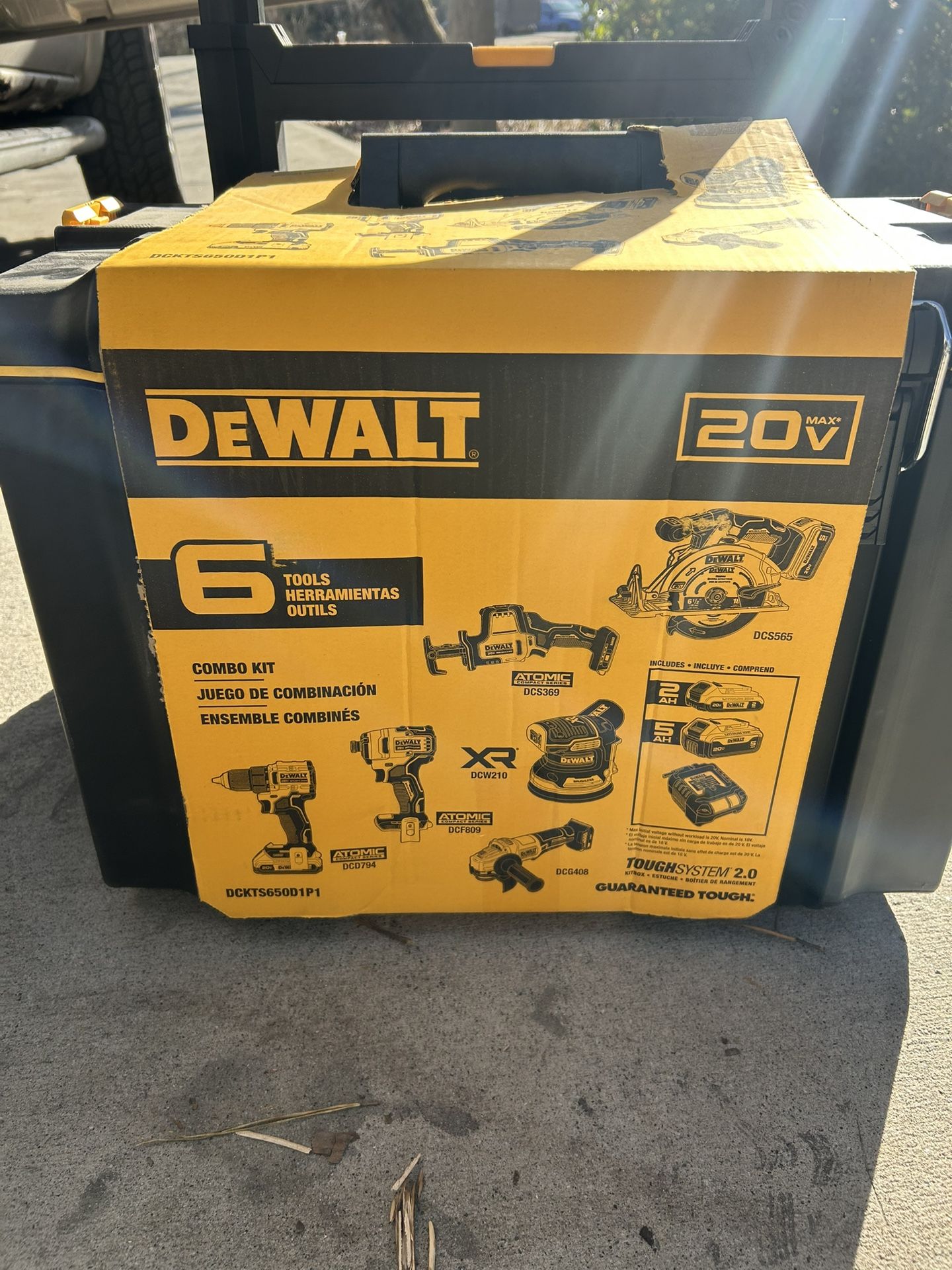 Has 6 Dewalt tool set. Includes 1 2AH battery and 1 5 AH battery and charger.