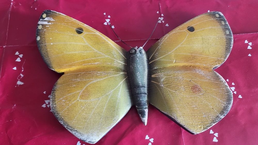 VTG wooden hand Crafted Yellow painted butterfly GARDEN Wall Art