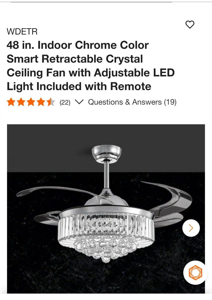 WDETR 48 in. Indoor Chrome Color Smart Retractable Crystal Ceiling Fan with Adjustable LED Light Included with Remote