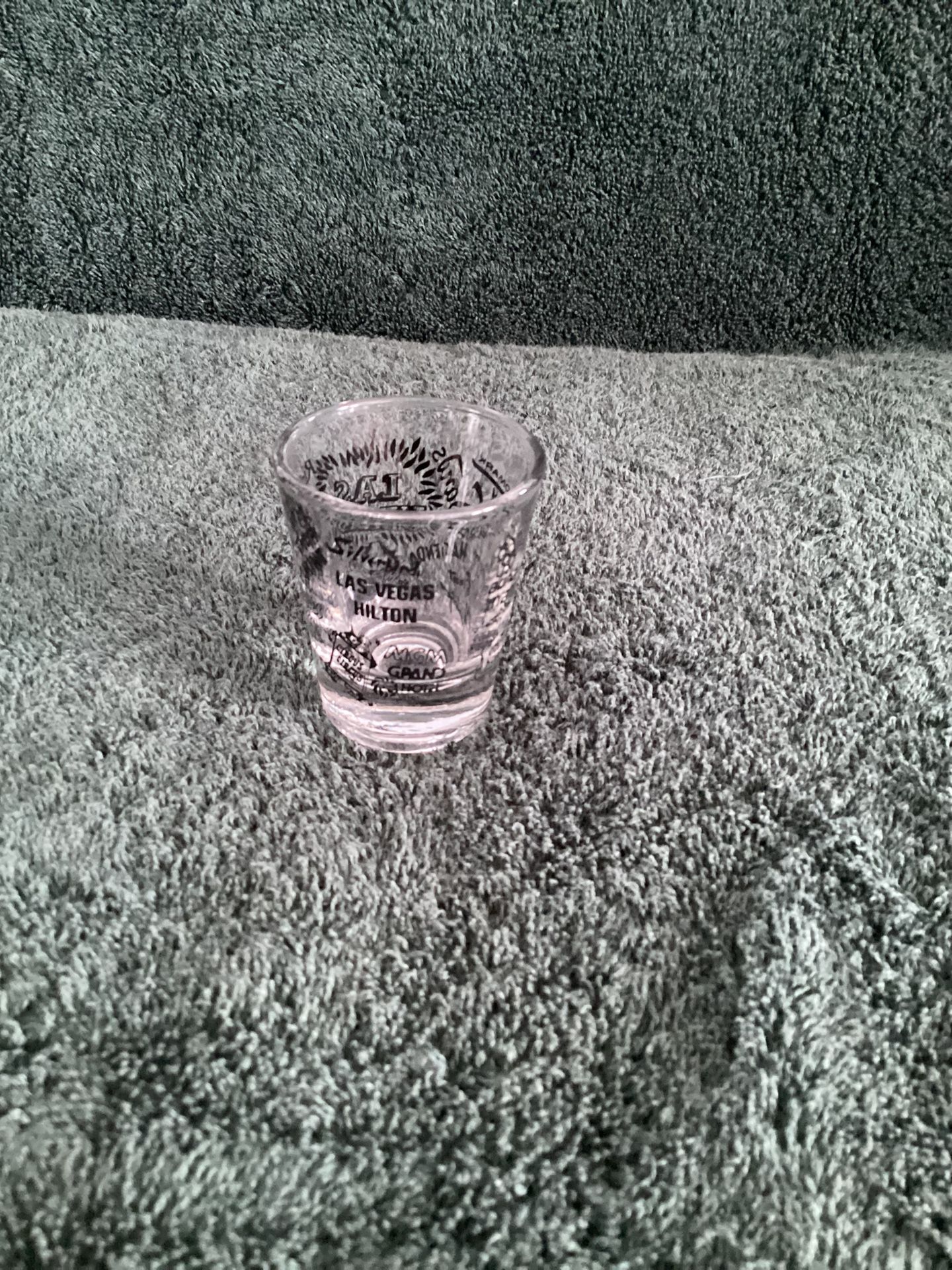 Vintage Las Vegas Shot Glass With Lists Of Hotels In Las Vegas