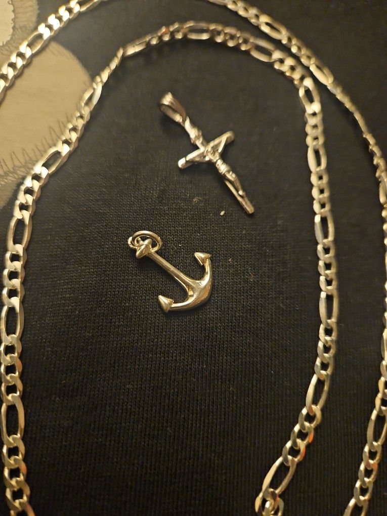 24" 4mm Fargo Chain 925 Silver 2 Pendants Both 925 Silver
