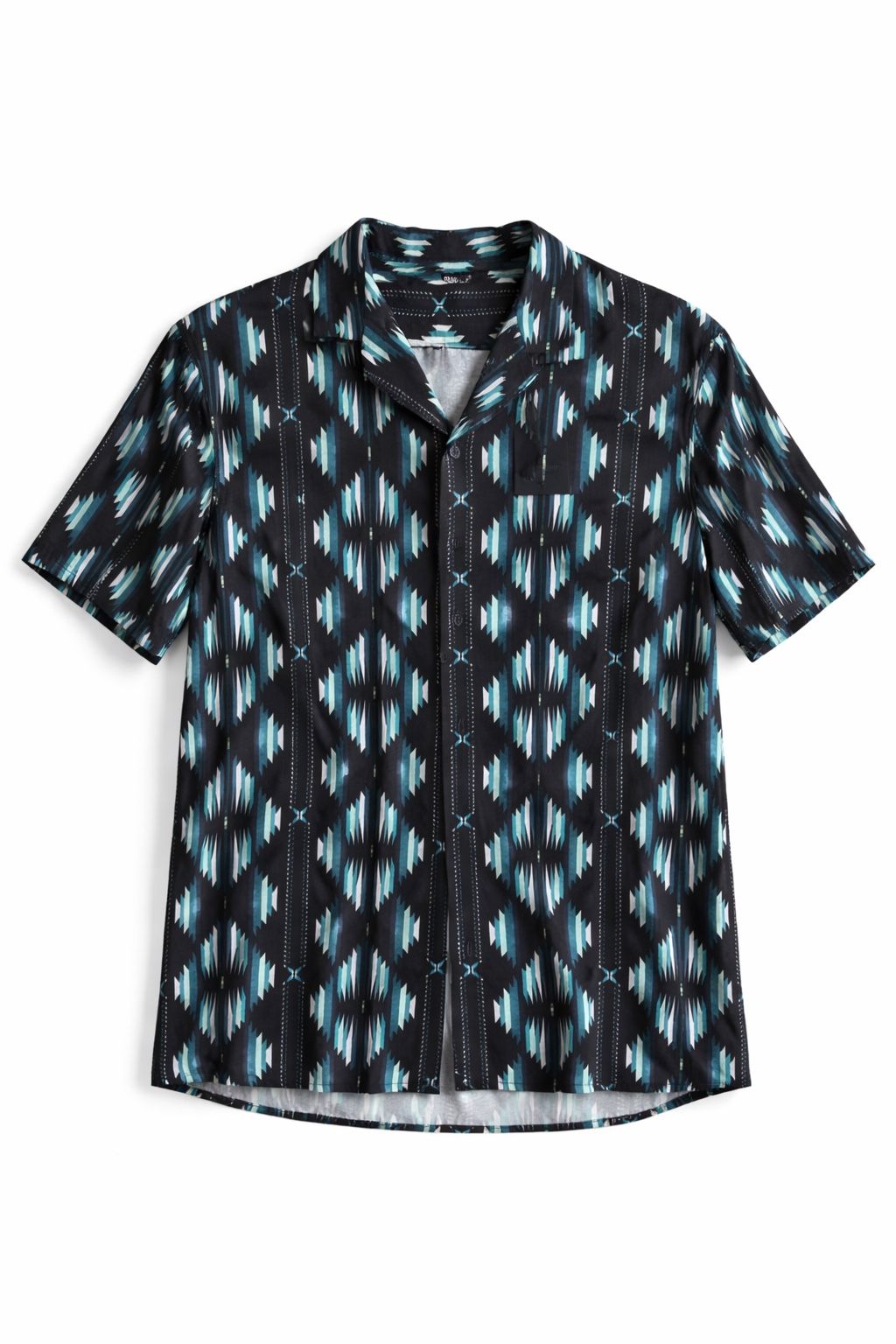 THE KOOPLES NWT SZ S BLACK BLUE Geometric Tribal Camp Shirt NWT $195 Size Small