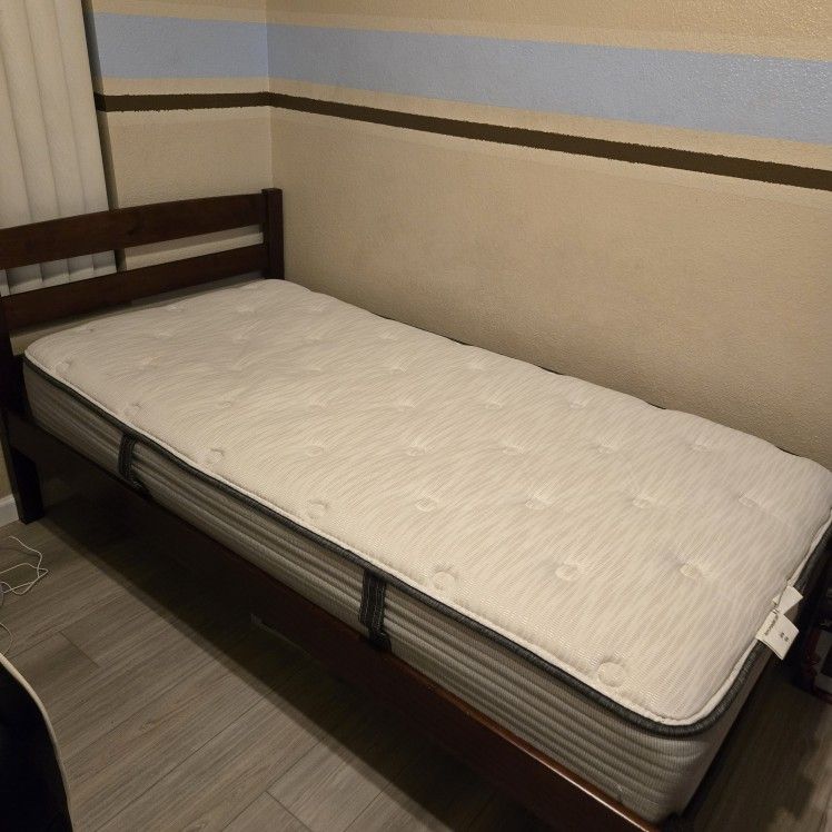 Twin size bed come with a dark cherry wood frame. No panels are broken. There are no stains on the mattress. Pick up near 67th Ave and Bell Rd