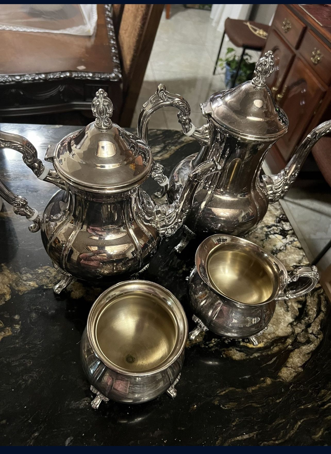 Antique Towel Silver Plated Tea Set 4 Pieces-Kitchen Set