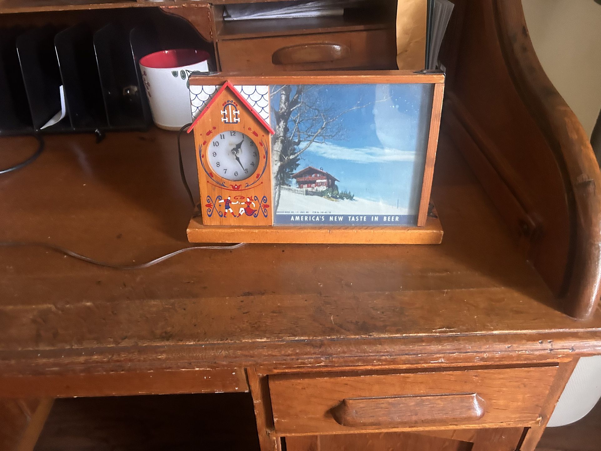 I wasn’t planning on selling this but life happens—and as much as I’d love to keep this in my collection, priorities shift. This 1950s Busch Bavarian Beer Lighted Clock Sign is one of the last surviving examples in this condition. Most of these are either long gone or sitting in high-end private collections, never to be seen again. If you check auctions, they’re becoming nearly impossible to find, and when one does pop up, it gets snatched instantly. • 100% ORIGINAL and in shockingly good shape for its age. • Lights up beautifully—imagine this illuminating your bar, saloon, or man cave. • Perfectly working clock with a smooth, vintage movement. • Handcrafted wooden frame, giving it that authentic mid-century character. • The glass scene lights up at night, creating an incredible warm glow that screams nostalgia. • Historic Busch Bavarian branding—a true collector’s centerpiece. This isn’t just a beer sign—it’s an investment piece. Prices on these have been surging, and with so few left in the wild, the value will only continue to rise. Don’t miss out—because once this is gone, it’s gone. Serious buyers only. Look at the pictures—they are part of the description. First-come, first-served.