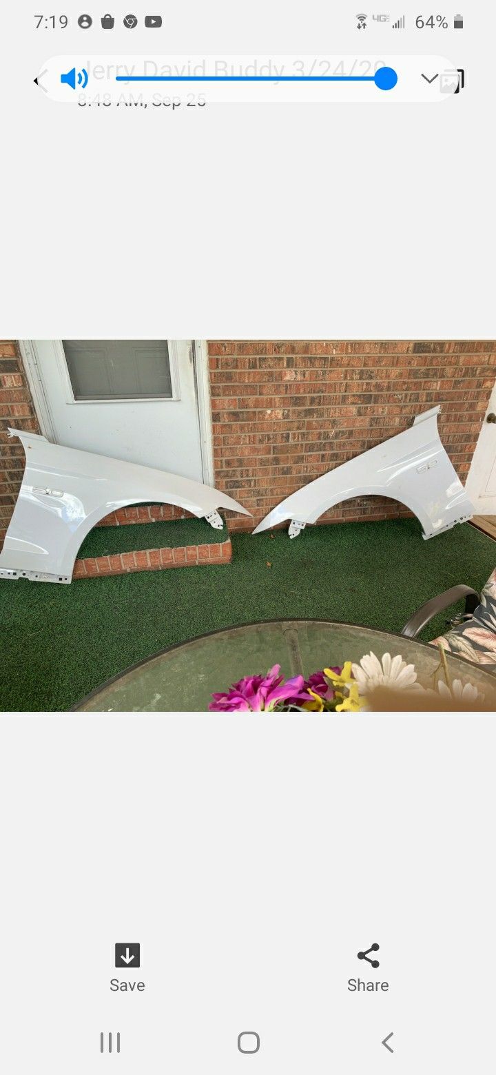 I have both front alum factory fenders nothing wrong with them they fit 2015-18 models paint is org and in vgc no scratches took them off my mustang and put G 350 fenders on will take 325.00 for the pair