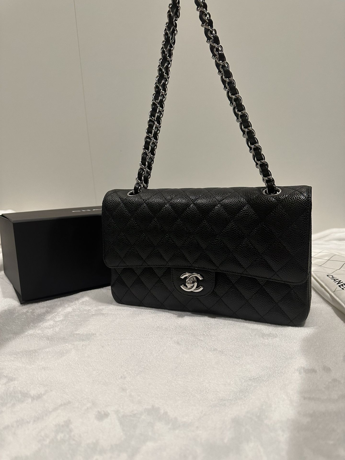 Chanel Double Quilt Caviar Medium New Silver Hardware Comes microchipped and new metal plate serial number Insta bdwatches or bendanniejewelry