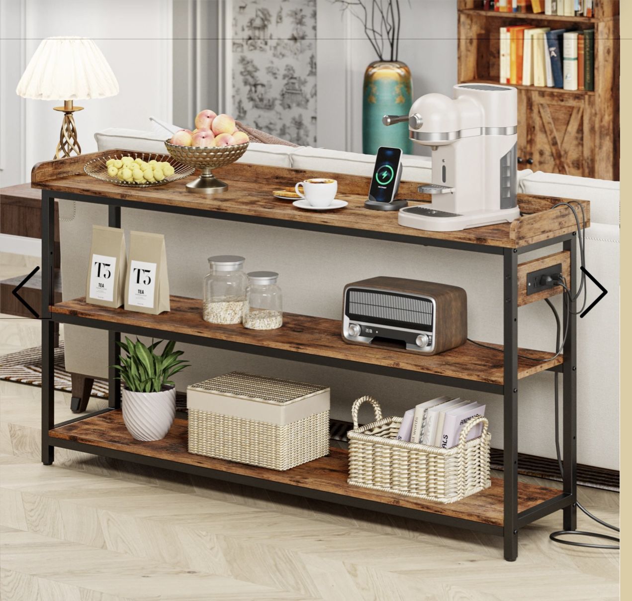 55" Console Table Height Adjustable with Power Outlet, for Entryway Living Room, Rustic Brown 【Multifunctional Shelf】With its retro farmhous