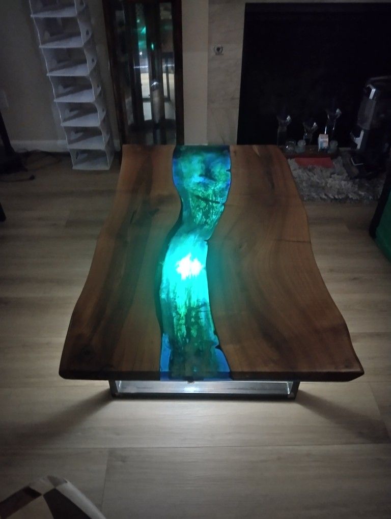 Epoxy emerald river table. Very nice very strong table ..$1300 table selling for $100 need gone L50"×W30"×H18"