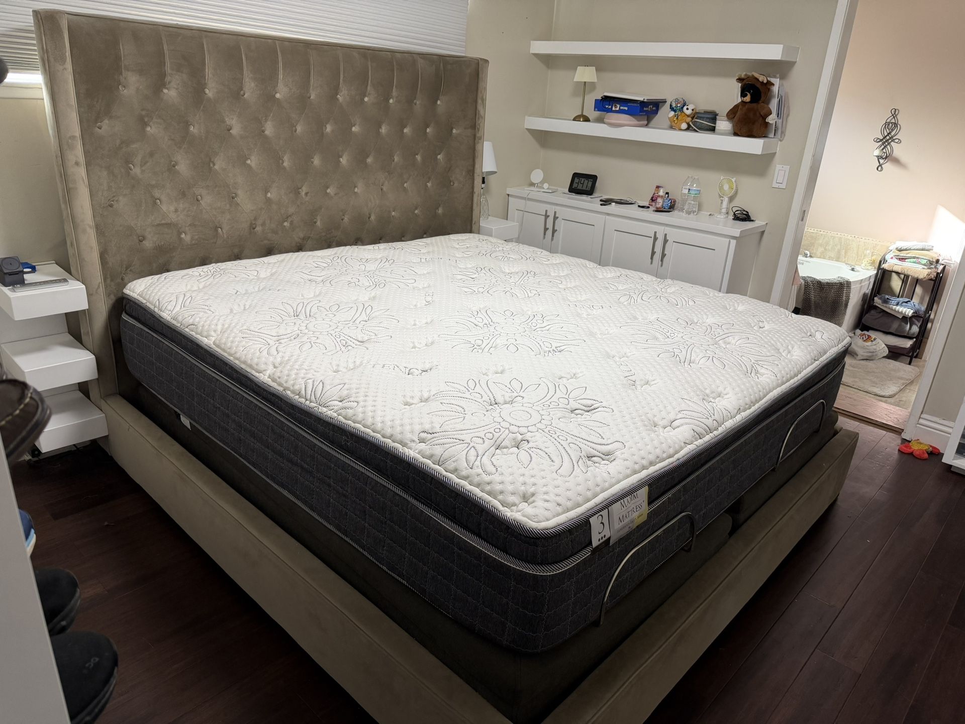 King Size Grey Bed frame And Maxim The Windsor Mattress