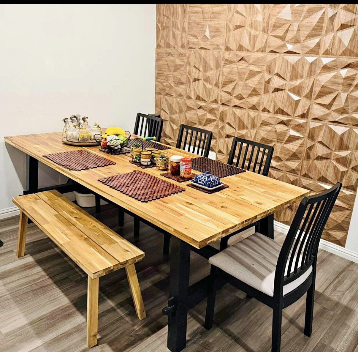 Dining Table Set – IKEA SKOGSTA (Solid Wood) + Chairs & Bench
