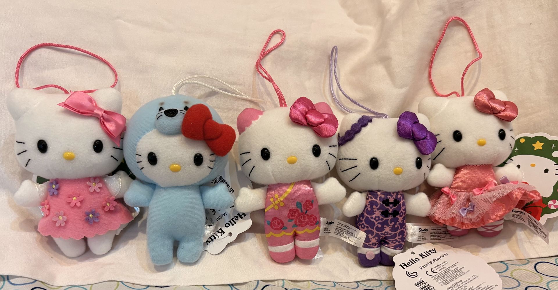 Hello Kitty plush toys brand new with tags ( from Macy's). I just never gifted them. Non smoking home 10 each. Or all for 40. Non smoking house let me know if you’re looking for any other hello Kitty items .I have many others - unopened/ unused.