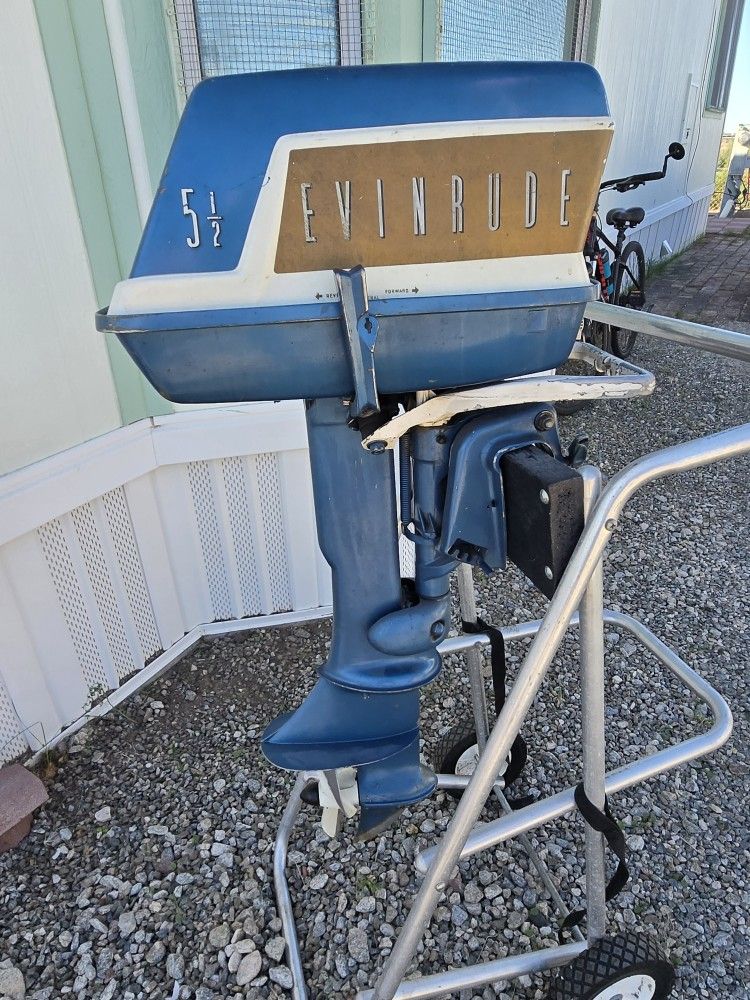 This vintage two-stroke outboard part of evinrude's 50th anniversary fisherman Golden Jubilee collection includes matching Evinrude gas can. in outstanding condition. Kept in air conditioned storage since 2010