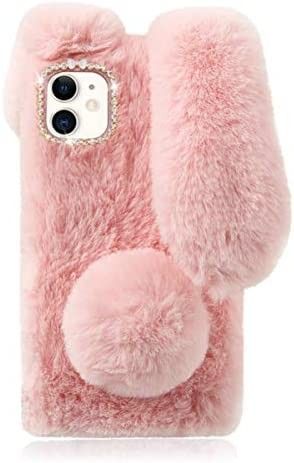 Cute Fluffy Bunny Case for iphone 12 pro max, Pink Furry Rabbit Fur Cover Plush Case with Ears and Fur Ball Protective New and never used! Fast and gentle shipping c: