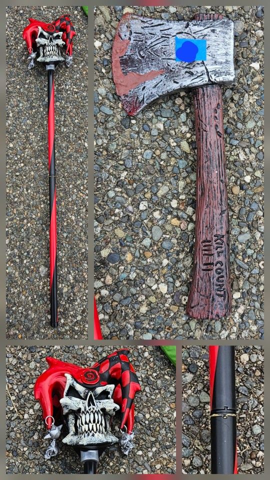 Halloween Cosplay Prop / Accessory Evil Jester, Halo Energy Sword, And Bloody Axe