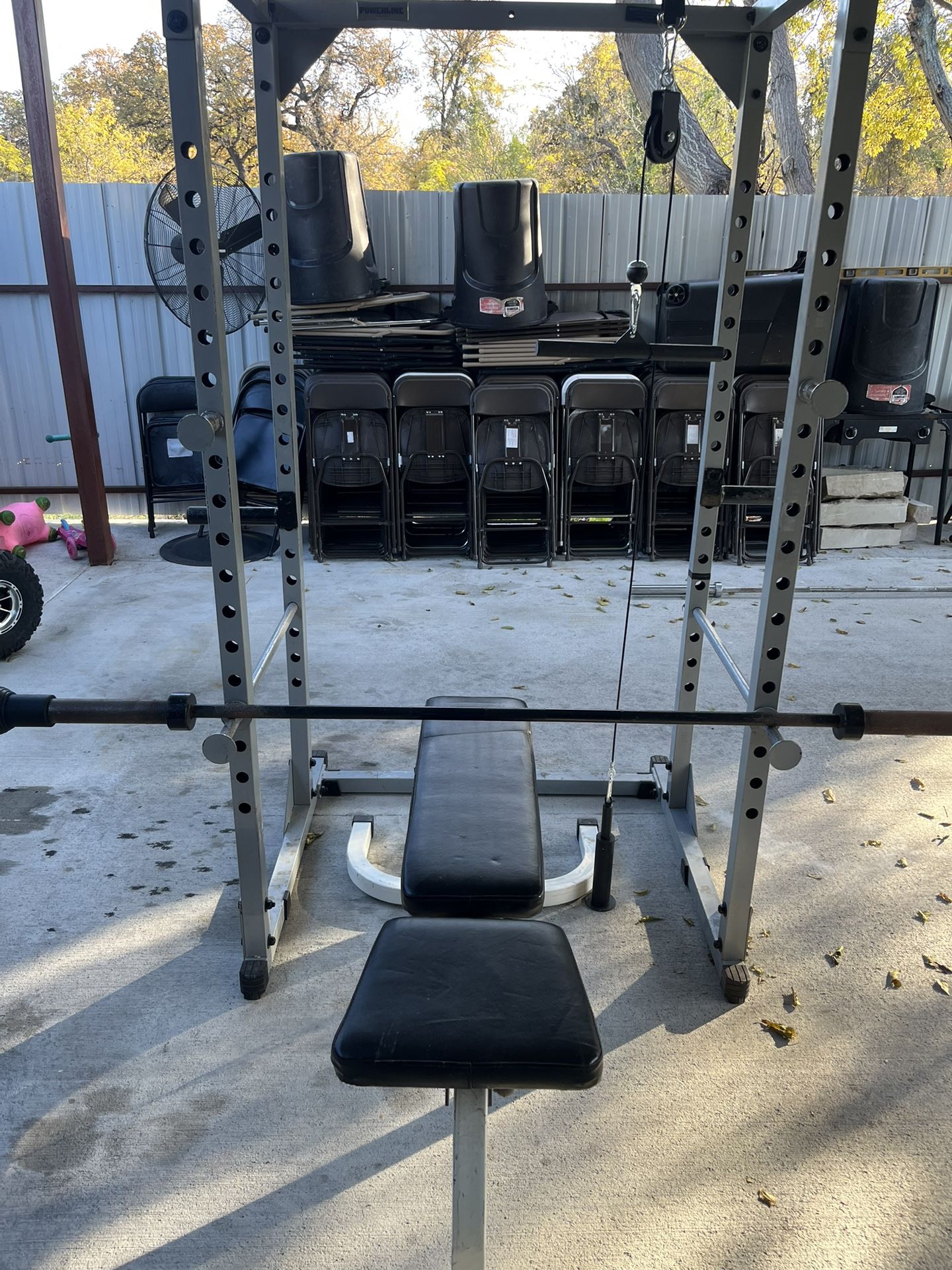 Adjustable bench Rack Bar Pulley system Located by downtown Fort Worth cash only