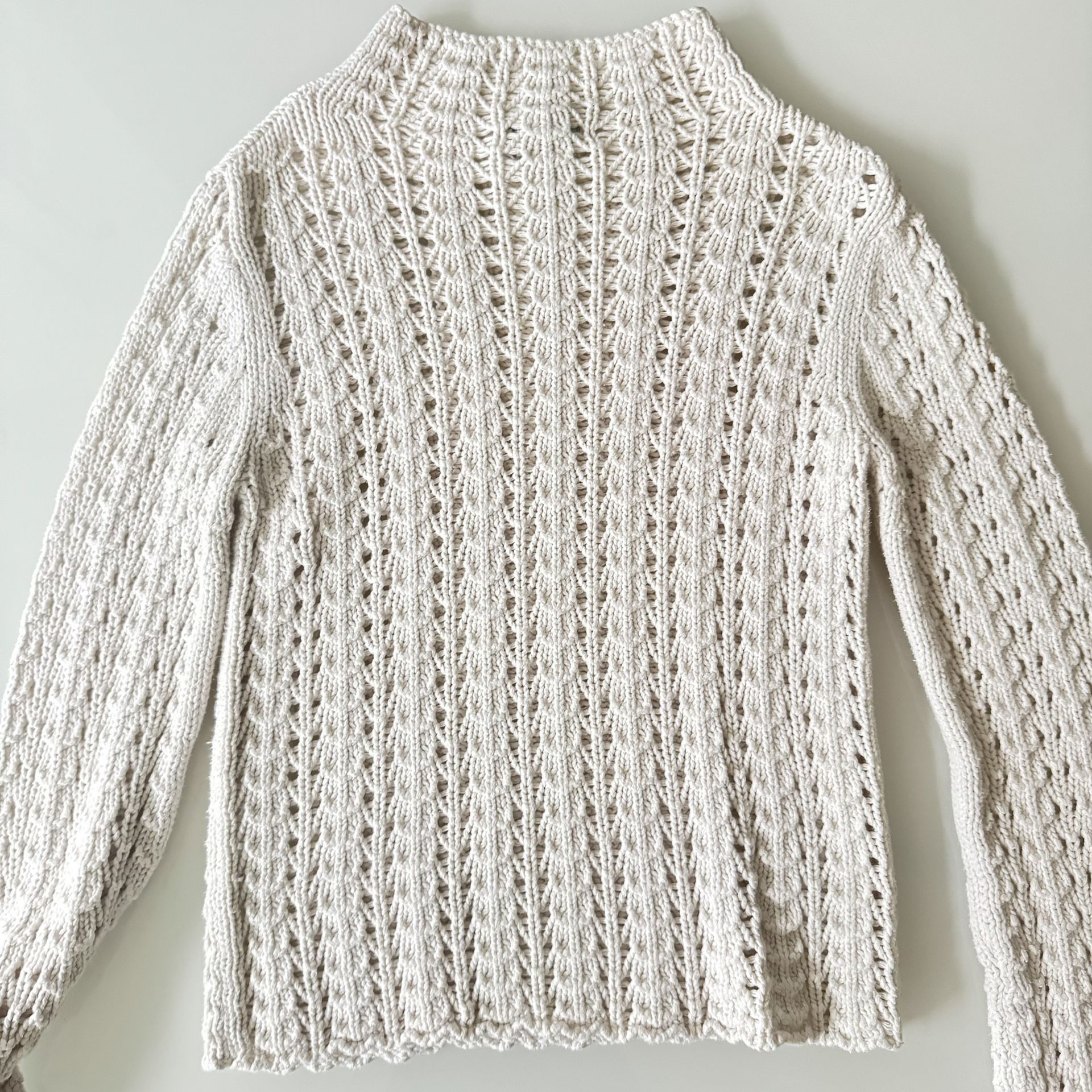 Women Small - Vintage Great Northwest Clothing Company Scalloped Knit Crochet Sweater Turtleneck White Cream