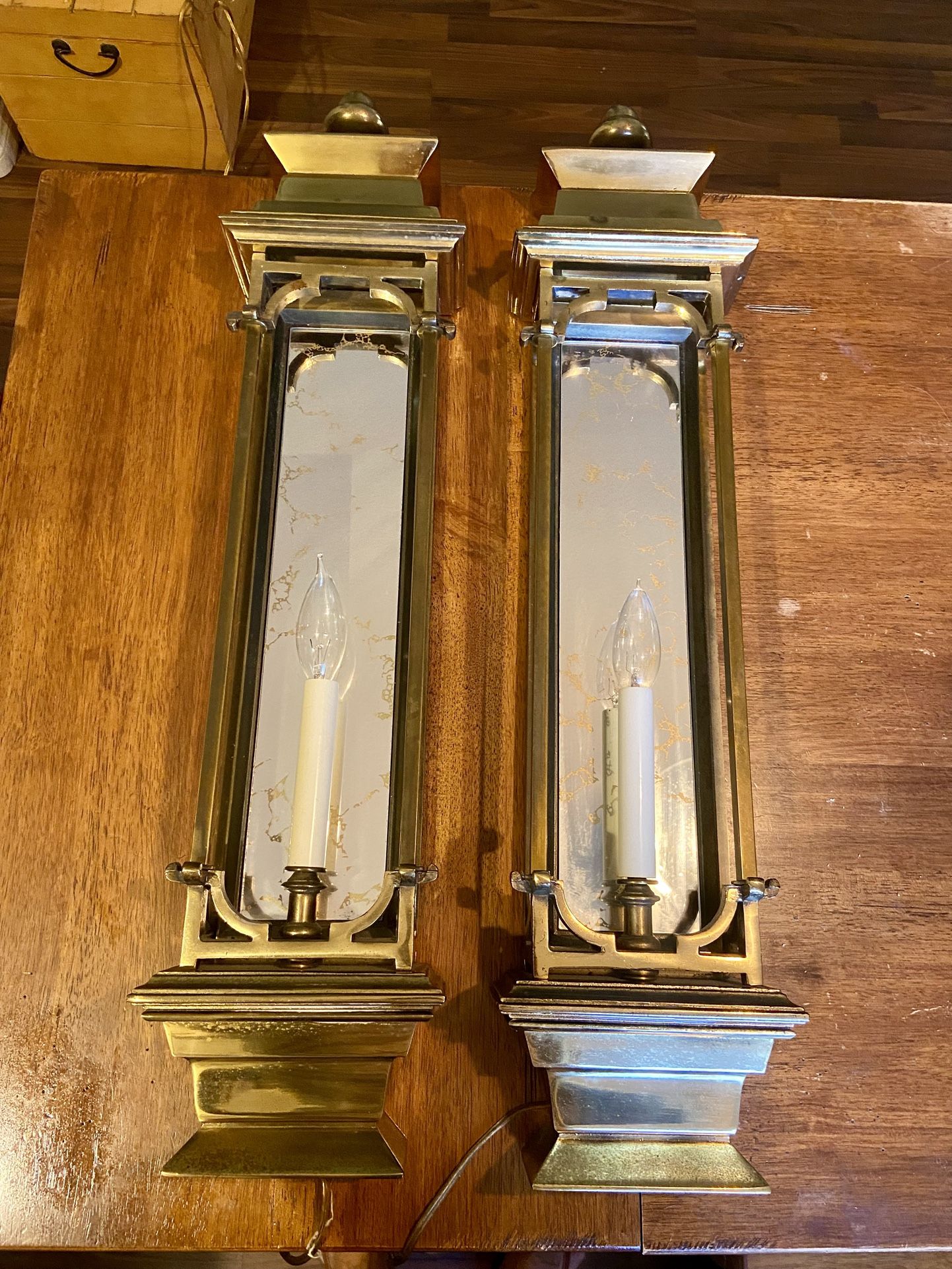 Authentic vintage MCM set of 2 solid brass wall sconces , works impeccably, all wiring is in excellent condition . Collectors of true mid century modern will cherish this find . One owner