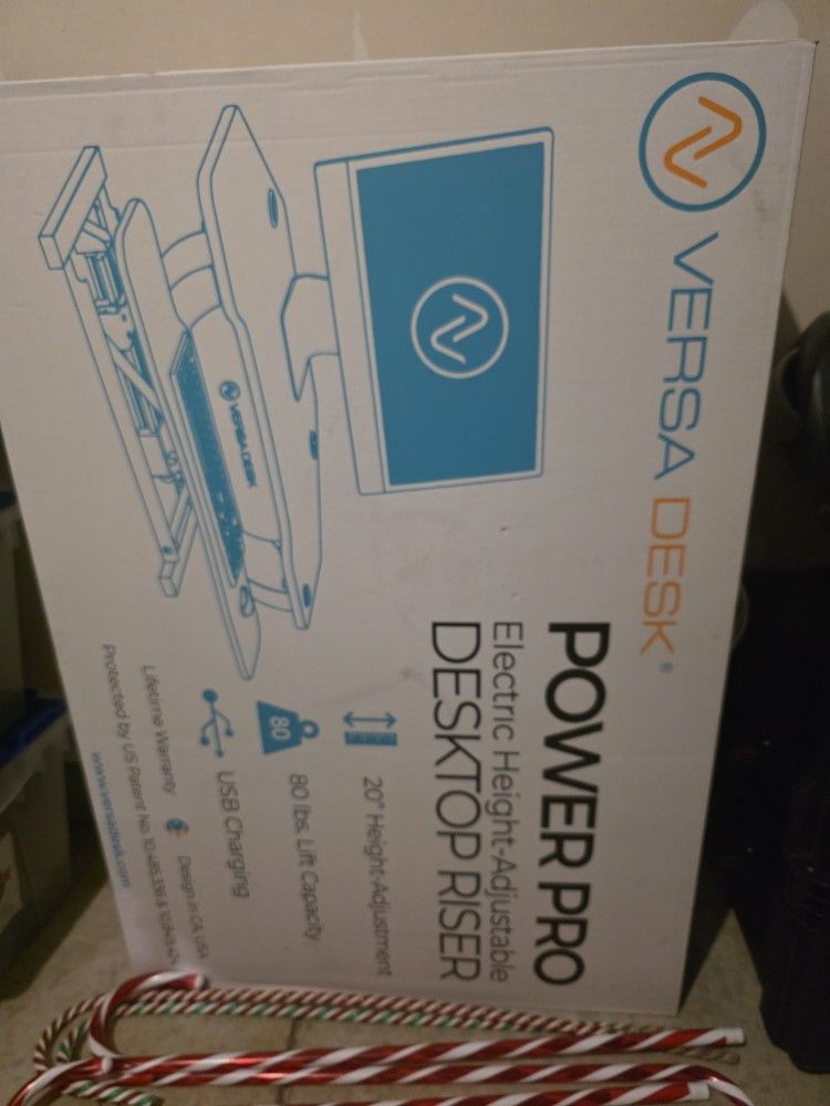 $300 riser i just need it gone Brand new never opened Space-optimized design Crafted specifically for corner spaces to maximize your space and efficiency. Built-in charging port Integrated USB-A port keeps your devices charged and your workspace seamlessly equipped to meet the demands of your day. Electric push-button height adjustment Effortlessly adjust the desk height with the simple push of a button. Supports up to 80 lbs Provides heavy duty stability and versatility for your needs. Height rises to 20” Stable vertical lift that rises to 20''. High-grade materials High-density fiberboard and powder-coated steel frame. Easy assembly Minimal assembly required; very quick to set up in your workspace.