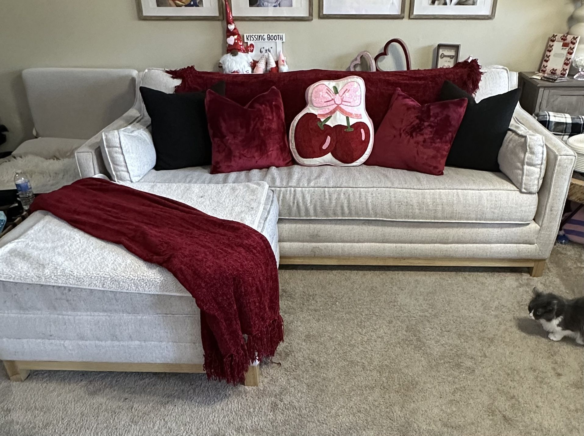 Assembled Dimensions: Sofa measures 86"W x 38"D x 36"H; ottoman measures 38"W x 30.5"D x 20H. Includes storage ottoman. With removable washable covers. Does not include decor pillows and blankets. Price is negotiable