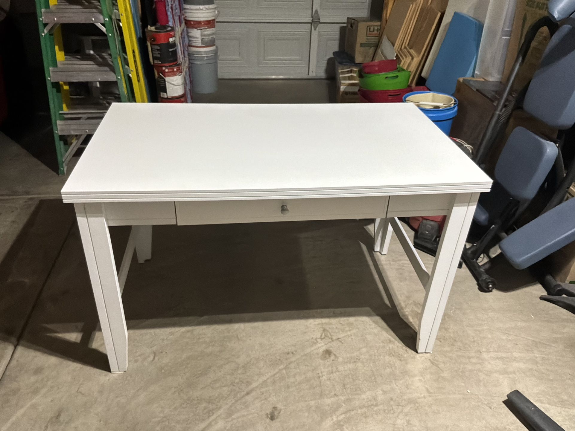 Desk with drawer. Front panel of a drawer opens for computer keyboard. Excellent condition. Dimensions are 48“ x 28“.