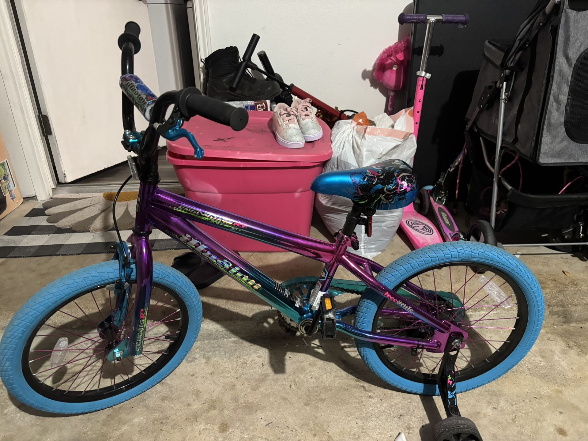 Bike in good condition. 18” wheels with training wheels attached . Rarely used