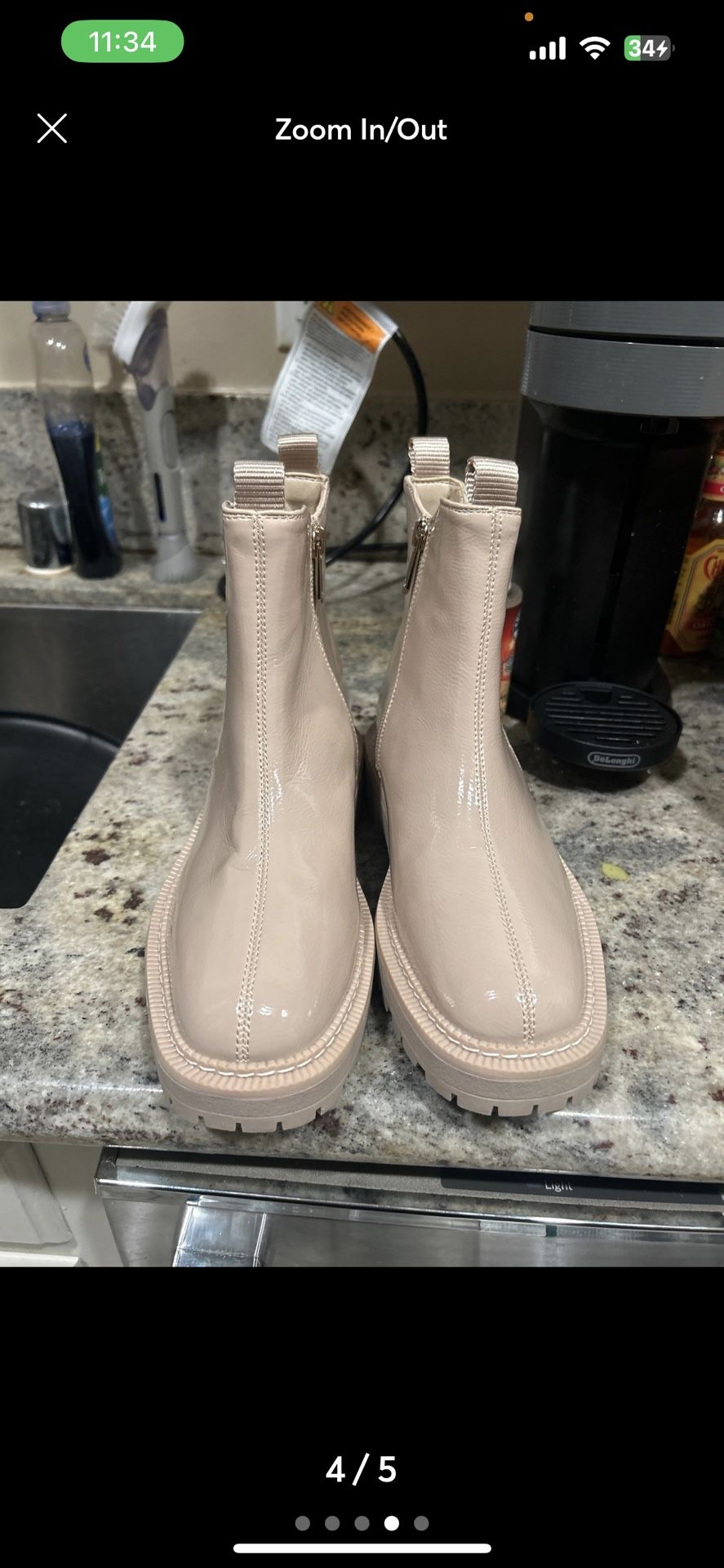 Tan booties European size 4 so I believe fits like a U.S. size 6 , worn only once, perfect condition