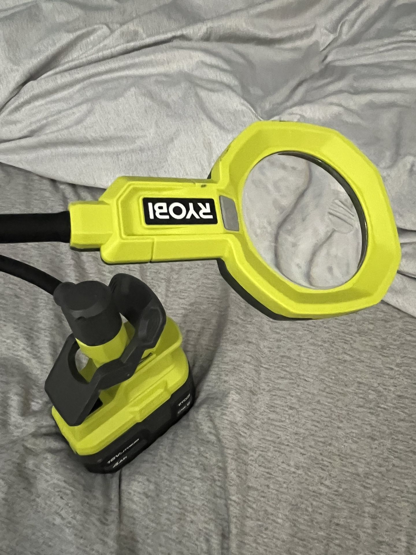 RYOBI Magnifying Clamp Light 18V LED 16 in Flexible Neck Rotating Base Tool Only No battery included The device will be tested before you take make sure it’s working perfectly Yes, if it’s posted, it’s still available Location city ALHAMBRA Thank you for looking