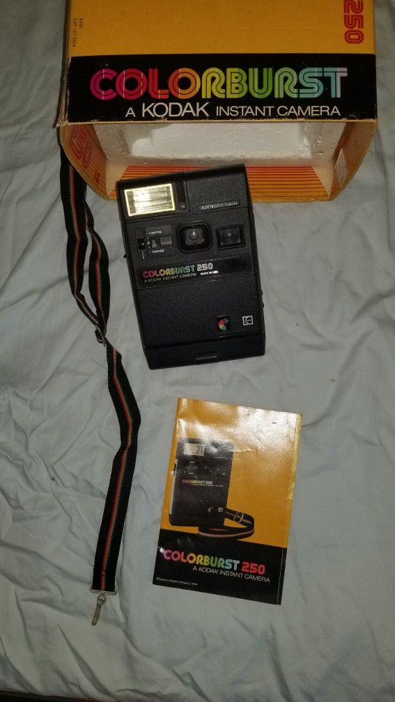 Kodak instant camera. 1980' Camera that Polaroid sued Kodak regarding instant pictures. Original box with strap included.