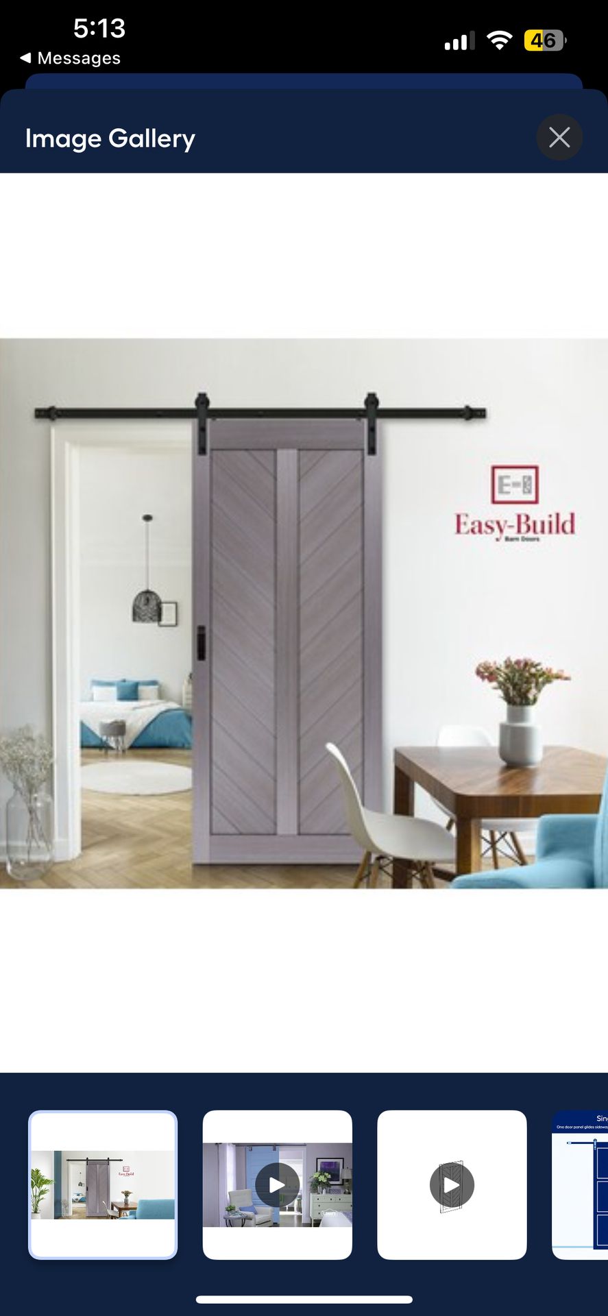 The ready-to-assemble barn door kit is made of modern, solid engineered wood construction. • Graphite grey chevron barn door design, engineered wood with hardened steel bent strap hardware in rustic Matte Black finish • Easy-Build Barn Door kit, no priming, painting or staining required • Compact, easy to bring home easy to assemble, easy to install, easy on the wallet, easy on the eye • Includes engineered Wood planks and assembly hardware: straps, track, handle and hanging hardware Brand new in box! Decided on a different color scheme for the house and unfortunately it’s too late for me to return. Happy to answer any questions or provide pictures of the box