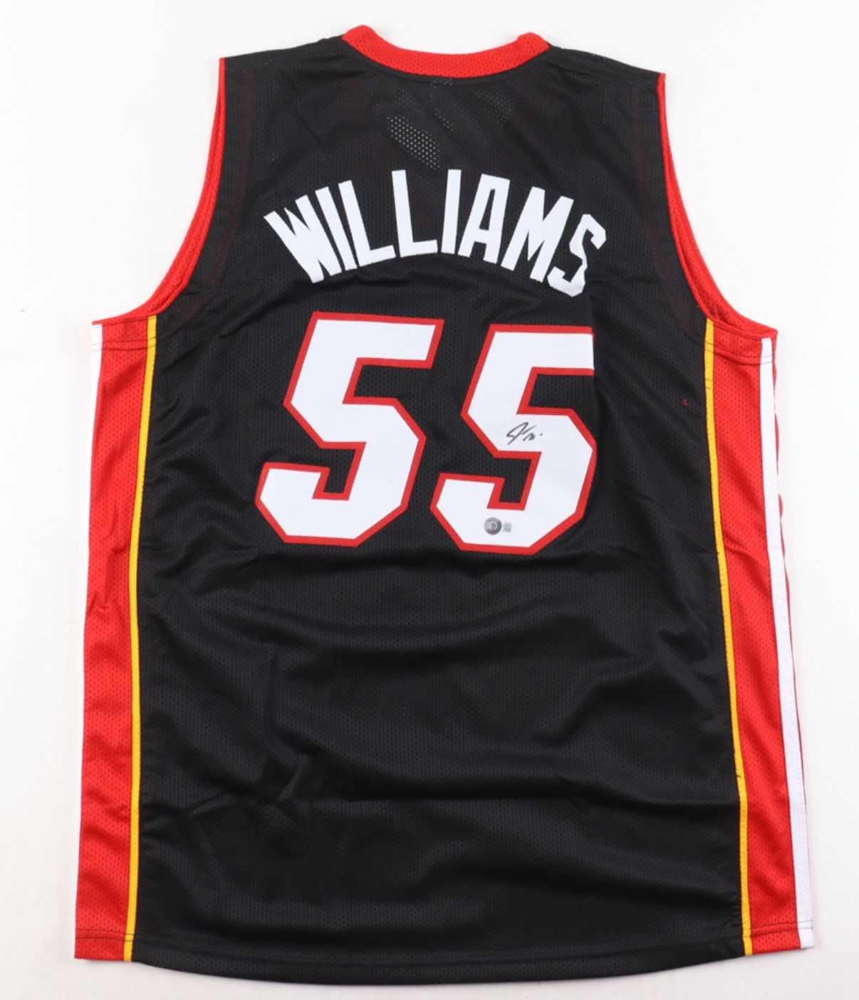 Hand stitched custom jersey autographed by Jason Williams of the Miami Heat. Authenticated by Beckett this “white chocolate” edition is a great add for any Heat fan.