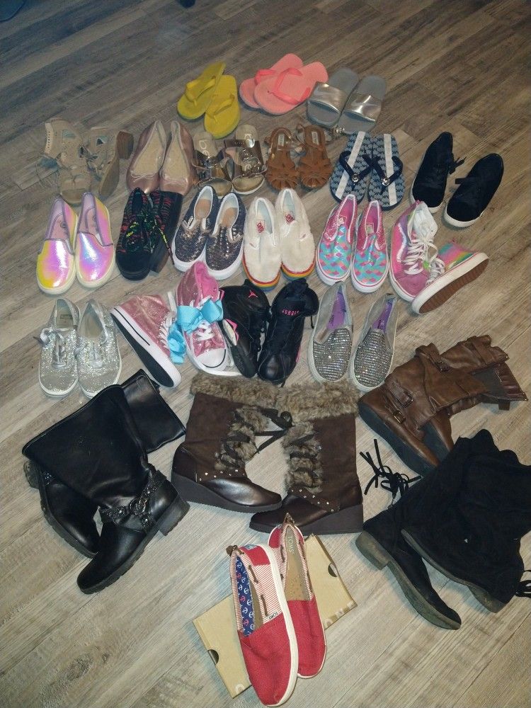Girl's shoes sizes 2 and 3 Jordans 5 pair vans Toms Boots Keds Michael Kors Steve Madden Looking to sale everything together!! $$125