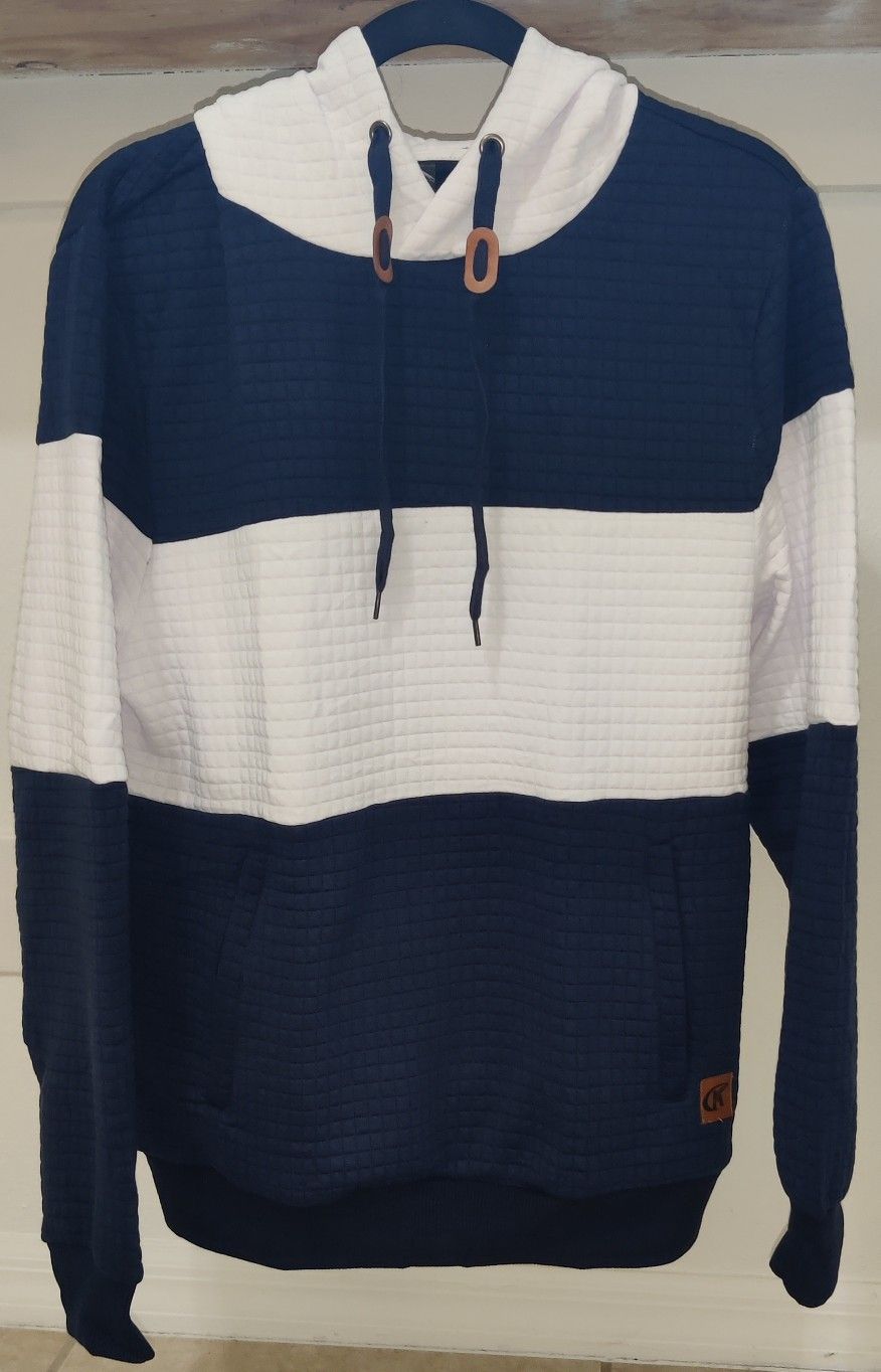 Mens Small Blue and White Hoodie with Zipper Pockets and Drawstring
