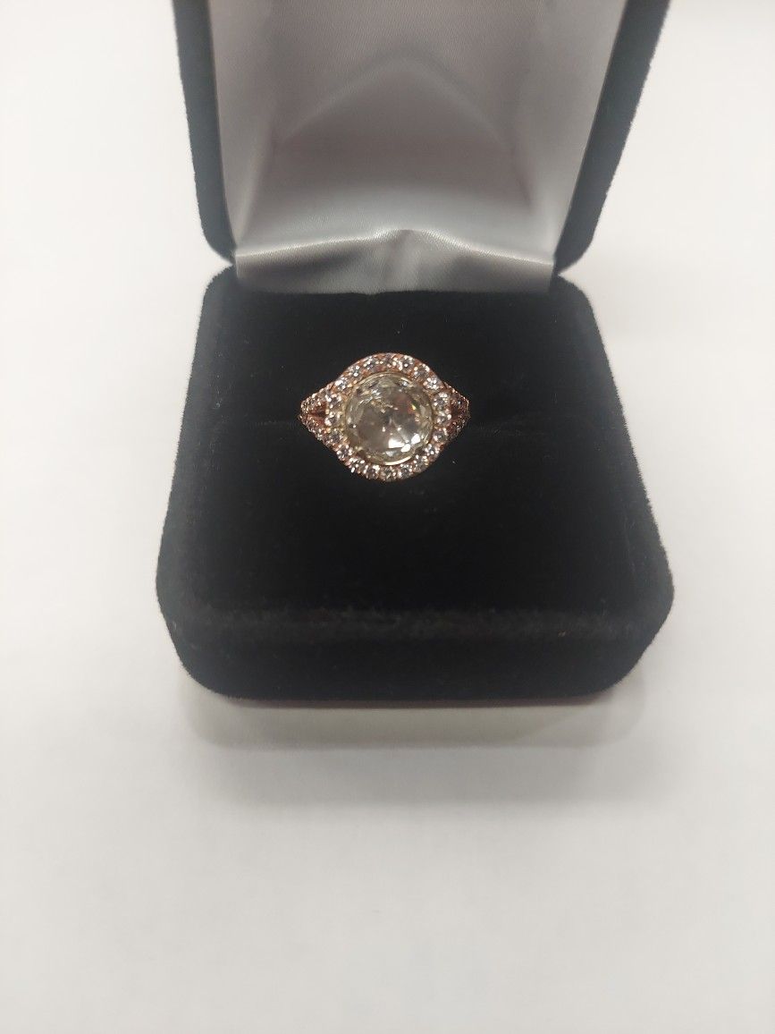 14karat Rose Gold 4.11 total diamonds 1.61 center Rose cut diamond with small round Halo & Shoulders Size 7 With GIA certification
