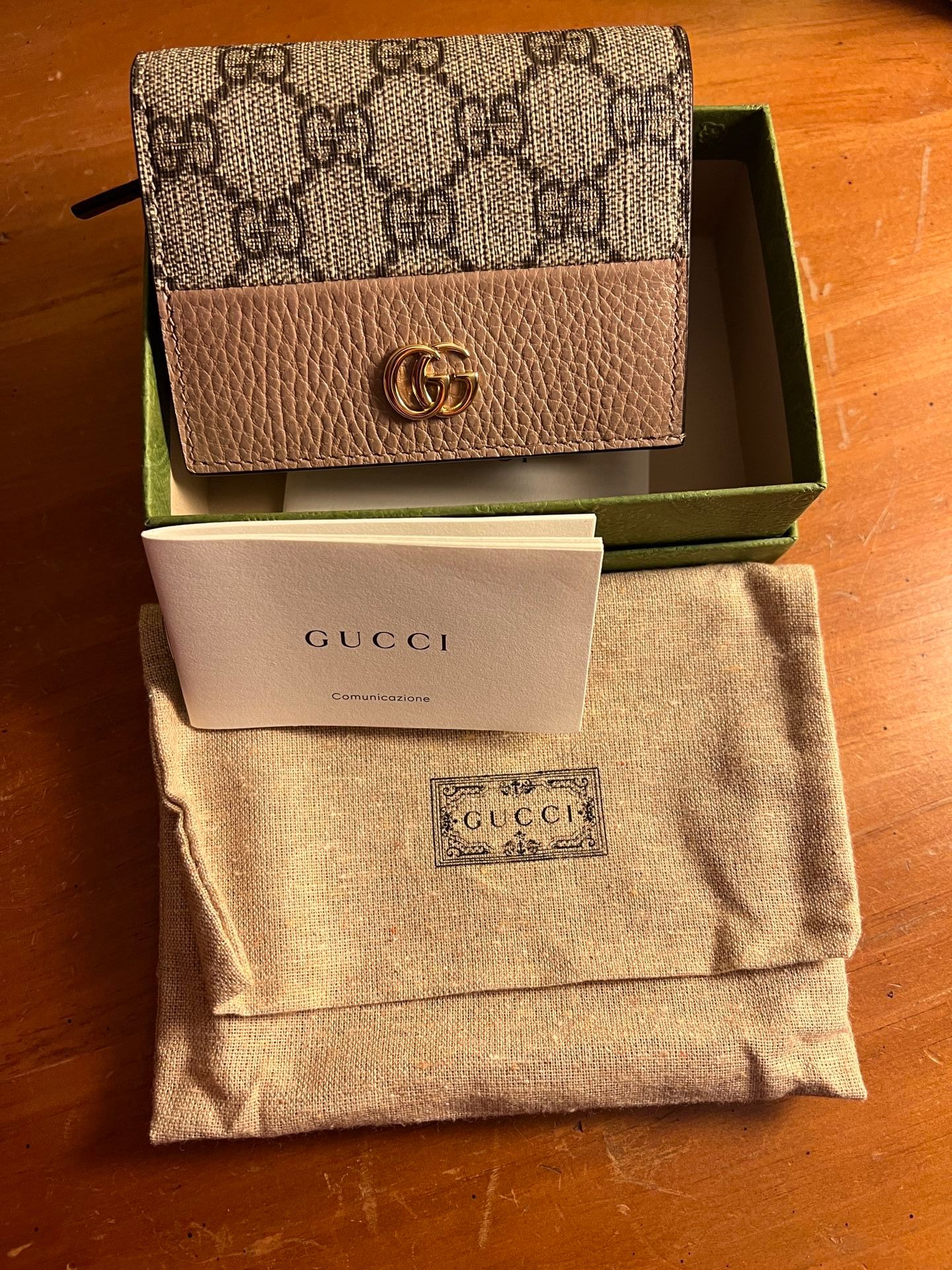 Authentic! Brand new Gucci card case wallet. Bought in Oc t 2022! Comes with box, dust bag. Color is dusty pink leather. Message me if questions. Perfect gift for Christmas! Made in Italy! Availble to ship or meet in public No need to go to Gucci store!