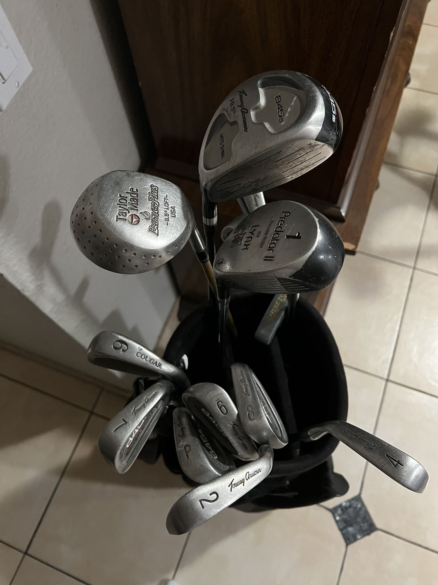 Tommy Armour Golf Clubs - 10.5 driver Tommy Armour - 9.5 driver Taylor Made - 1 Hybrid Lynx - 2i-PW Tommy Armour - Putter Bag included Decent condition, only getting rid of due to upgrade